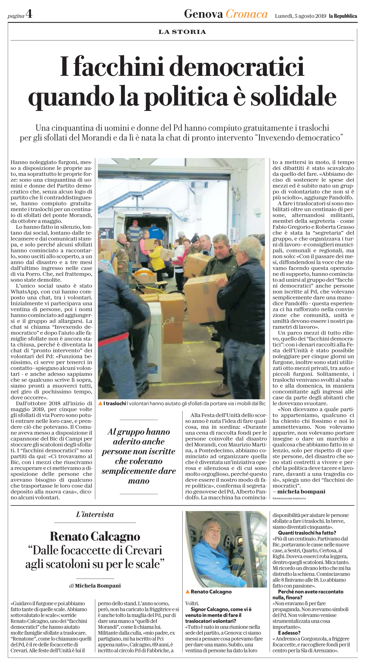 da La Repubblica, ed. Genova del 5 agosto 2019