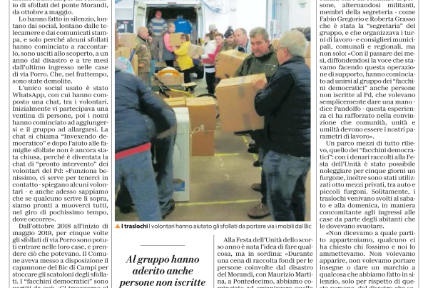 “Quella mattina grigia e bagnata da una pioggia incessante, appena avvisato di quanto era accaduto – racconta con la voce rotta dall’emozione –, mi sono precipitato sull’argine del Polcevera. Non dimenticherò mai quello che ho visto e sentito, le persone intrappolate dalle carcasse delle auto e sepolte dalle macerie che gridavano aiuto. Ho cercato per quanto possibile di portare il mio contributo alle famiglie e ai soccorritori. Nel tardo pomeriggio ero nella zona rossa accanto agli sfollati. Lì un incontro che mi porterò dentro per tutta la vita: una bambina che doveva lasciare la sua casa e che chiedeva alla madre “Mamma moriremo anche noi?”. Ecco, in quel momento ho iniziato a trasformare il profondo dolore in forza e mi sono sentito di rassicurare la bimba rispondendole: ce la faremo. Perché è nelle tragedie che ci si misura, prima di tutto come uomini, tirando fuori il meglio di noi”.